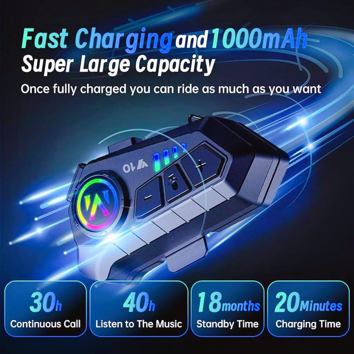 Answer 2: MotoMic comes with a powerful 2000mAh built-in battery, providing super long standby time so you can enjoy worry-free communication and music playback during extended rides without frequent recharging.